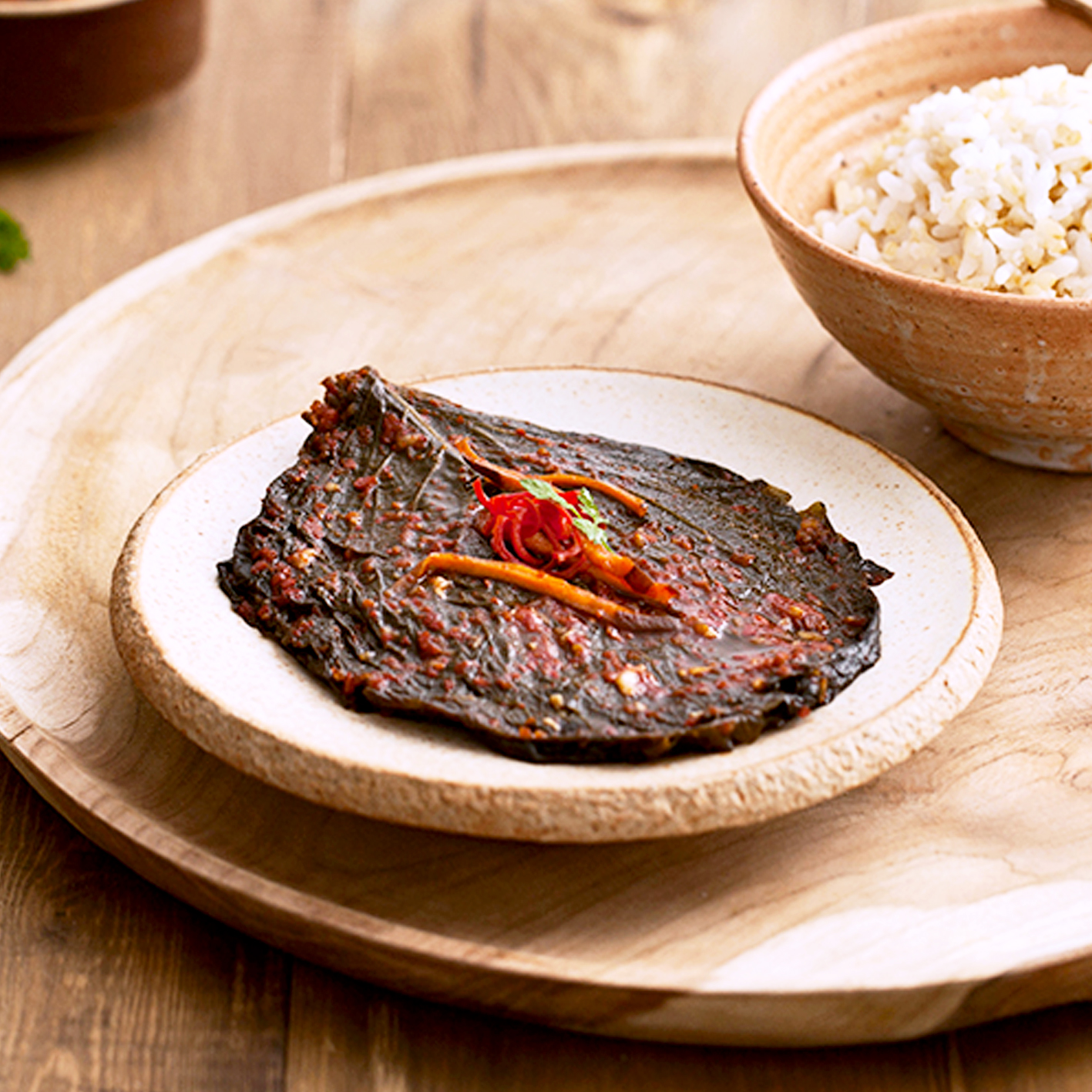 노지깻잎을 소금에 절인다음 깨끗이 세척 후 (찹쌀죽에 액젓, 양파즙, 마늘, 과일즙)을 양념 합니다